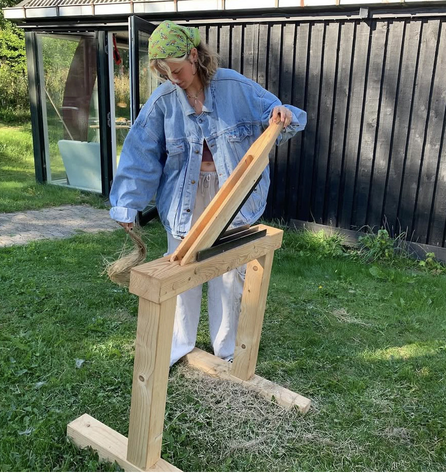I began growing and processing flax with Anne Vinter at Avnø Oasis Ecovillage in 2023, where we developed the From Flax to Linen project, a workshop and lectures program to involve all generations in the complete linen process, from seed to fabric.