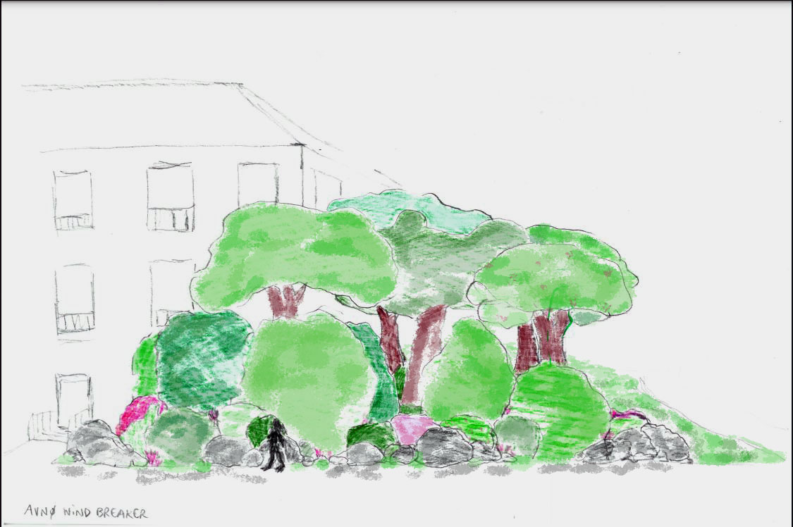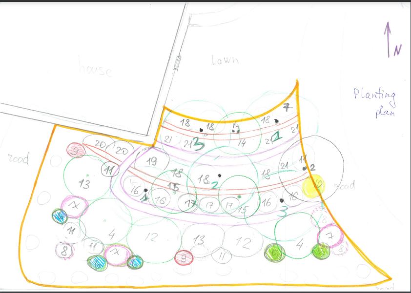 For this project I worked with Helena Marchenko, an Ukrainian permaculture and landscape designer. To slow down strong winds coming from the sea located few meters from the front building side, we decided to design and grow a medicinal and ornemental windbreaker along the side building.
